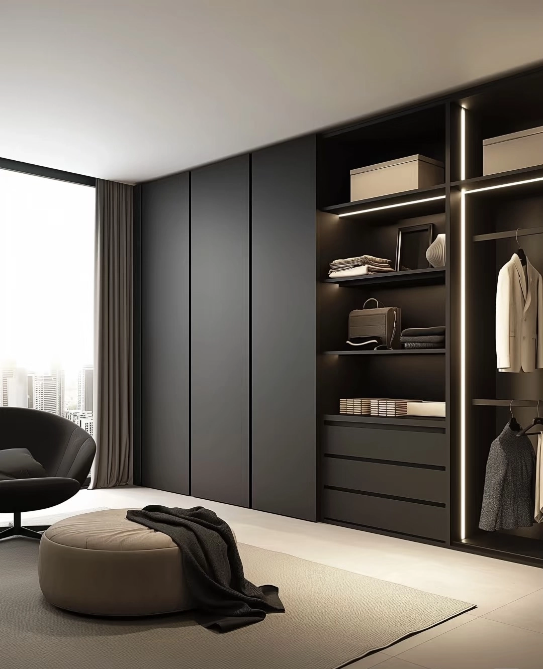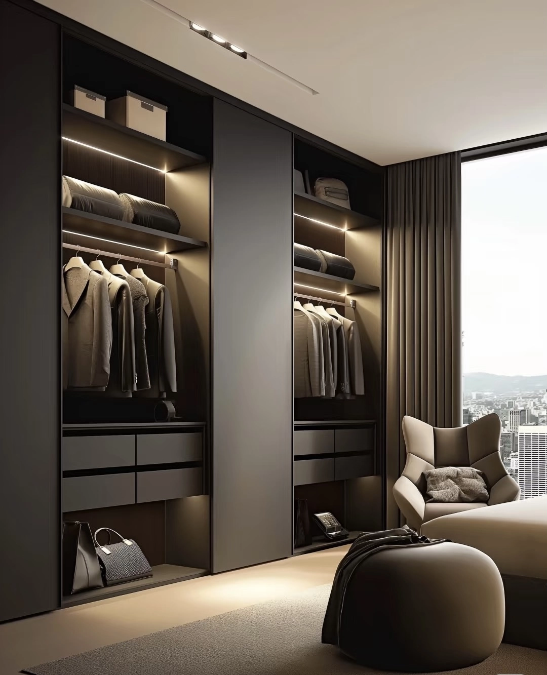 - Adaptive Shelving: Customizable compartments for clothing, accessories, and tech gadgets.