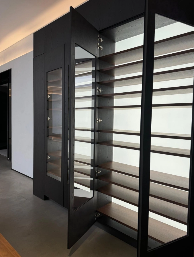 | Door Panel | Black Oak & Brown Walnut | Glass Door | Wooden frame glass door |