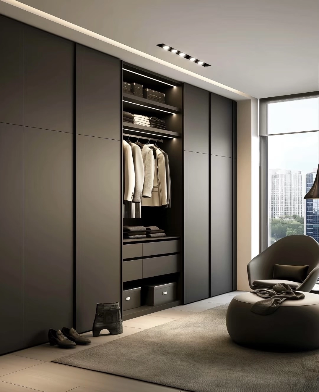 - Adaptive Shelving: Customizable compartments for clothing, accessories, and tech gadgets.